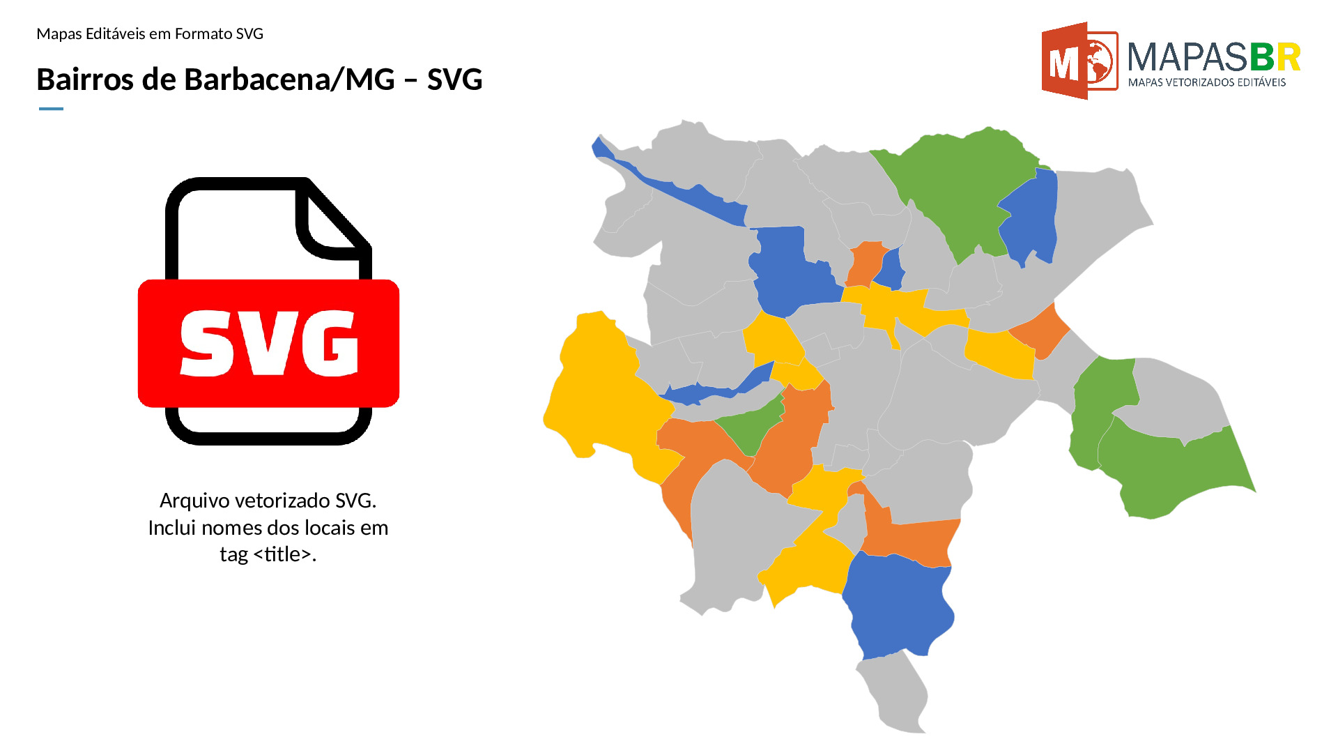 Bairros de Barbacena/MG em formato SVG, compatível com web e diversos aplicativos de edição de texto ou gráfico.