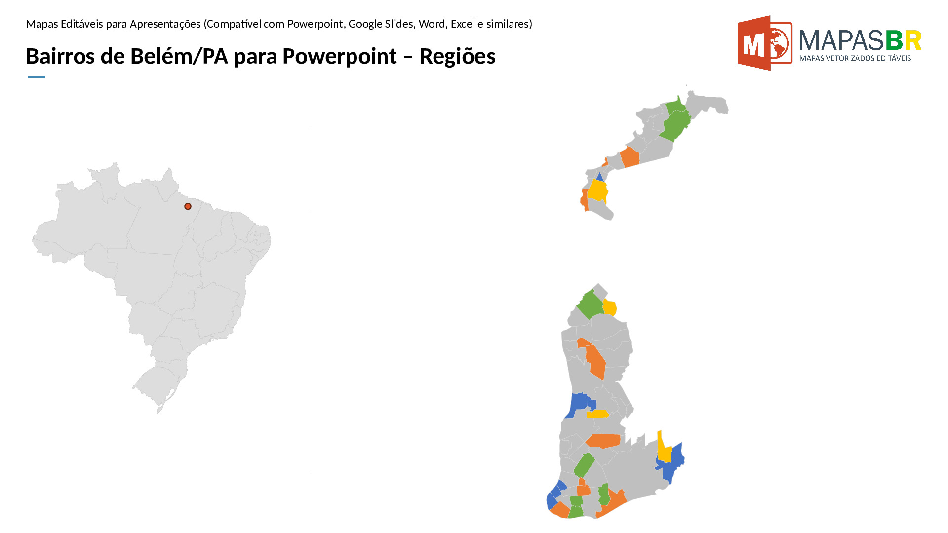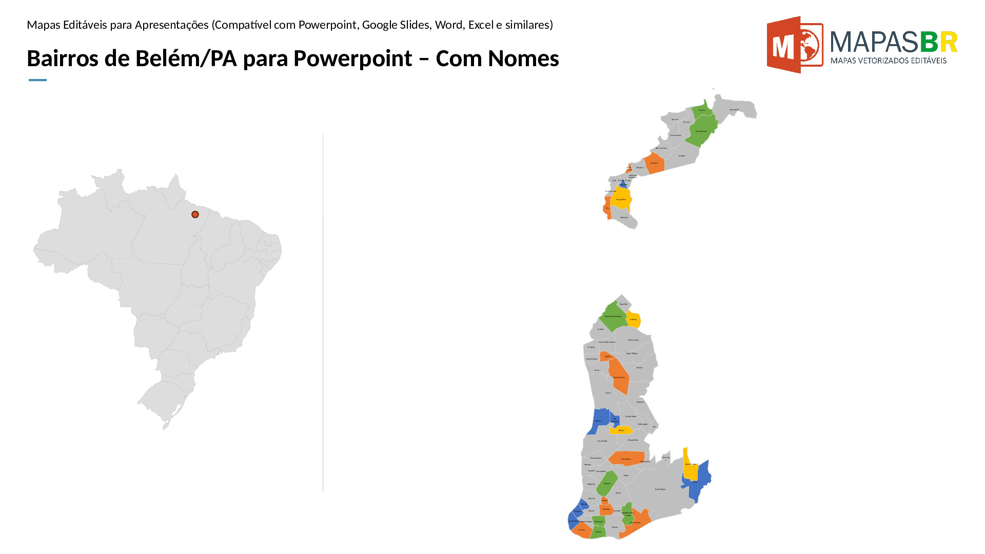Bairros de Belém/PA em formato PPTX, editável no PowerPoint, Google Apresentações ou OpenOffice.