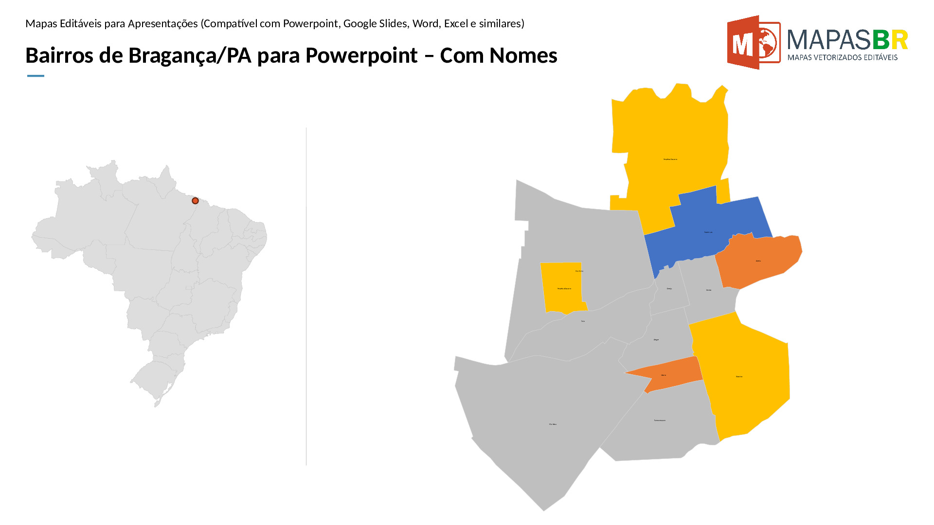 Bairros de Bragança/PA em formato PPTX, editável no PowerPoint, Google Apresentações ou OpenOffice.