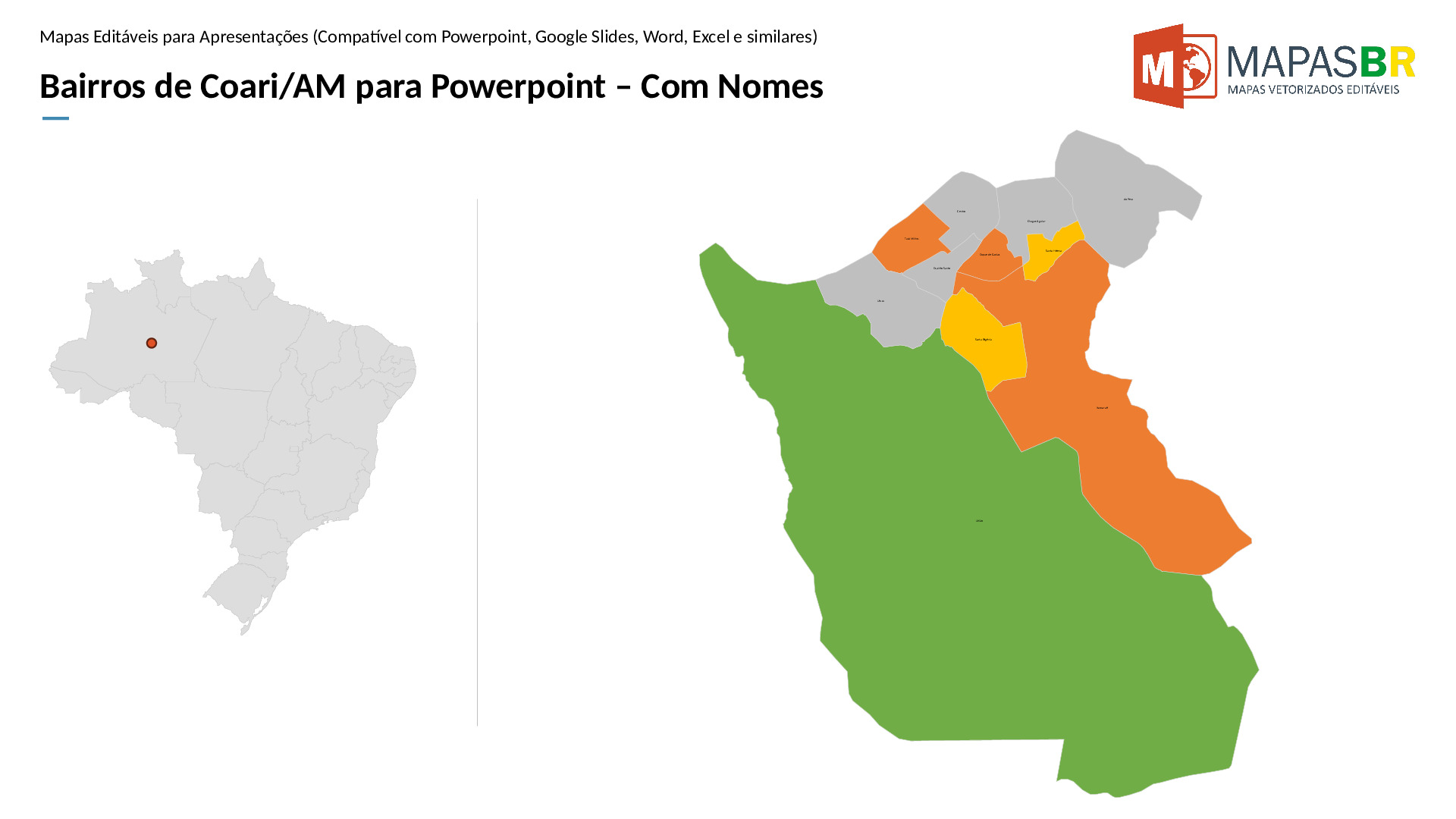 Bairros de Coari/AM em formato PPTX, editável no PowerPoint, Google Apresentações ou OpenOffice.
