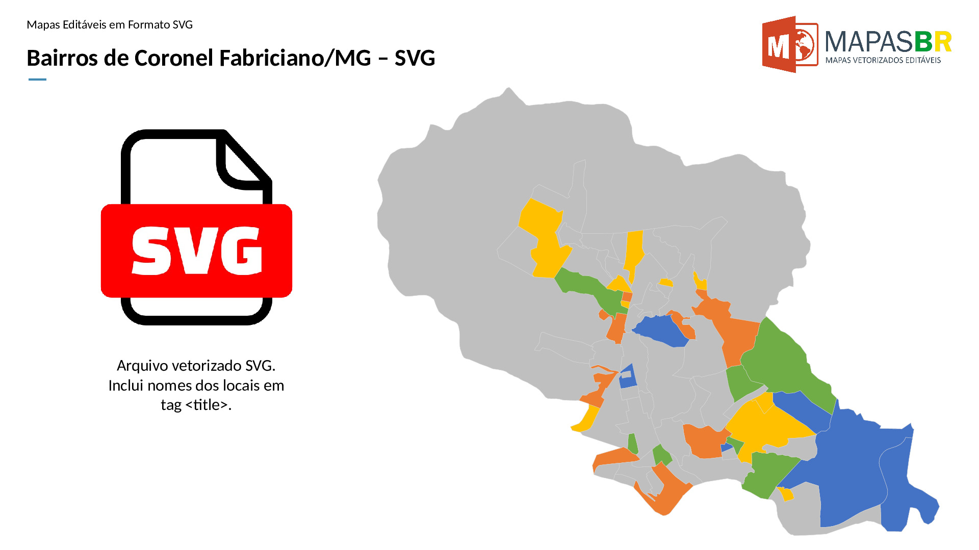 Bairros de Coronel Fabriciano/MG em formato SVG, compatível com web e diversos aplicativos de edição de texto ou gráfico.