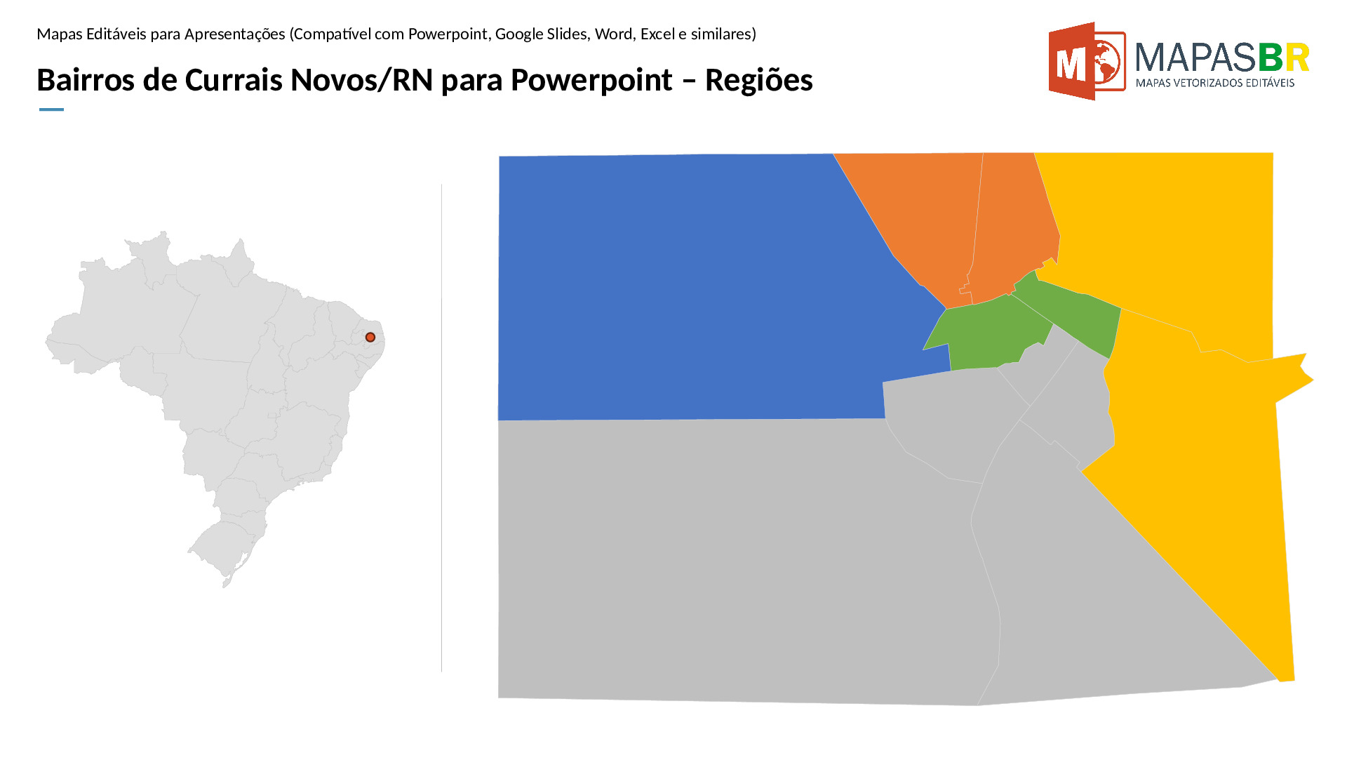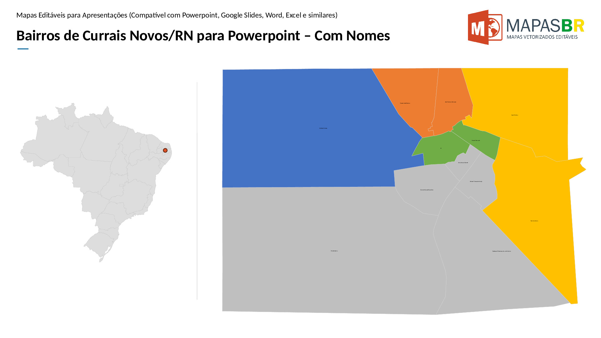 Bairros de Currais Novos/RN em formato PPTX, editável no PowerPoint, Google Apresentações ou OpenOffice.