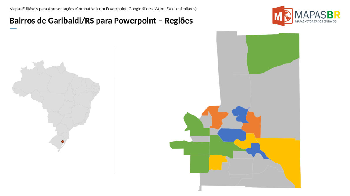 Bairros de Garibaldi/RS em formato PPTX, editável no PowerPoint, Google Apresentações ou OpenOffice.