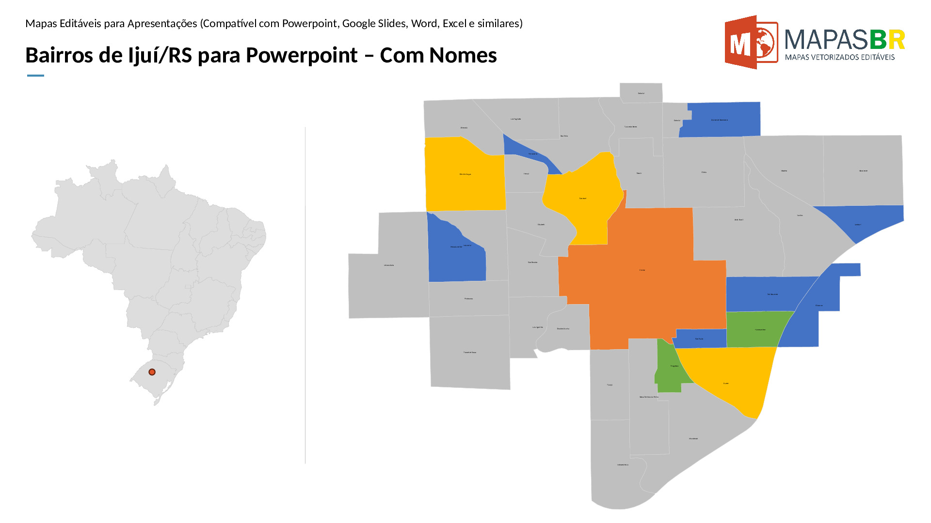 Bairros de Ijuí/RS em formato PPTX, editável no PowerPoint, Google Apresentações ou OpenOffice.