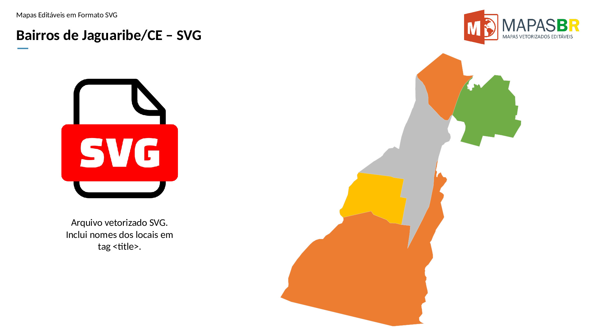 Bairros de Jaguaribe/CE em formato SVG, compatível com web e diversos aplicativos de edição de texto ou gráfico.