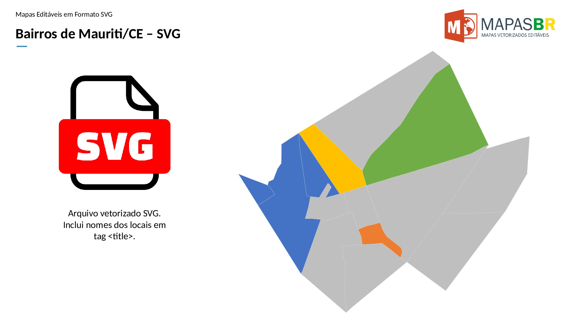 Bairros de Mauriti/CE em formato SVG, compatível com web e diversos aplicativos de edição de texto ou gráfico.