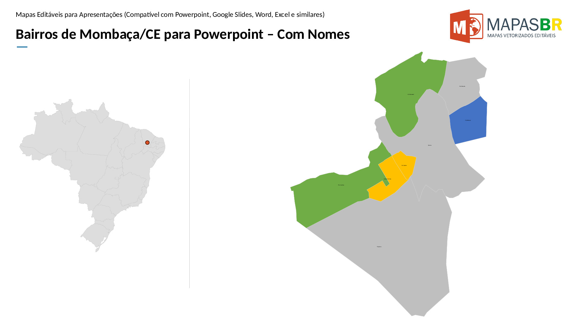Bairros de Mombaça/CE em formato PPTX, editável no PowerPoint, Google Apresentações ou OpenOffice.