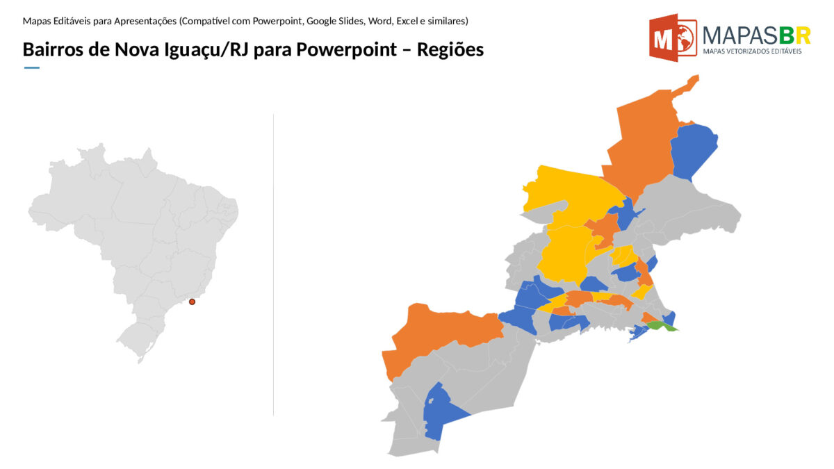 Bairros de Nova Iguaçu/RJ em formato PPTX, editável no PowerPoint, Google Apresentações ou OpenOffice.