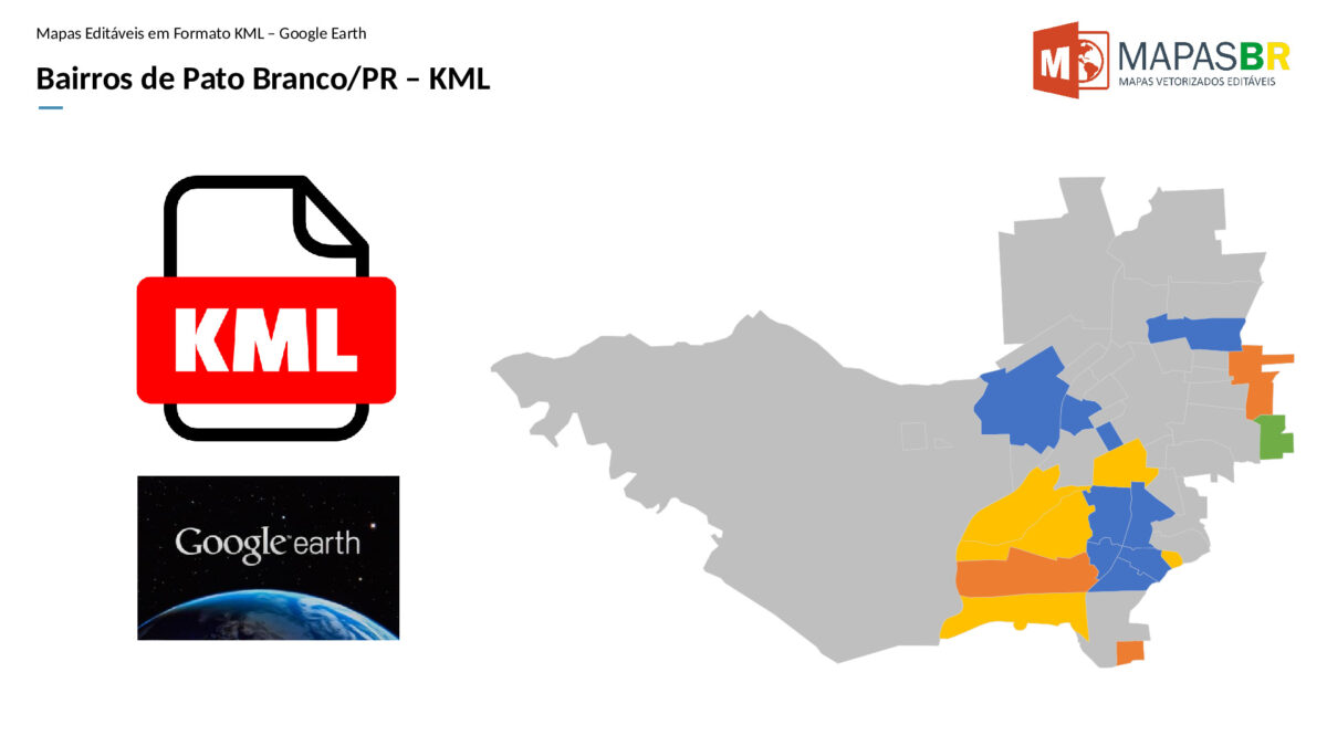 Bairros de Pato Branco/PR em formato KML, para exibição de dados no Google Earth ou Google Maps.