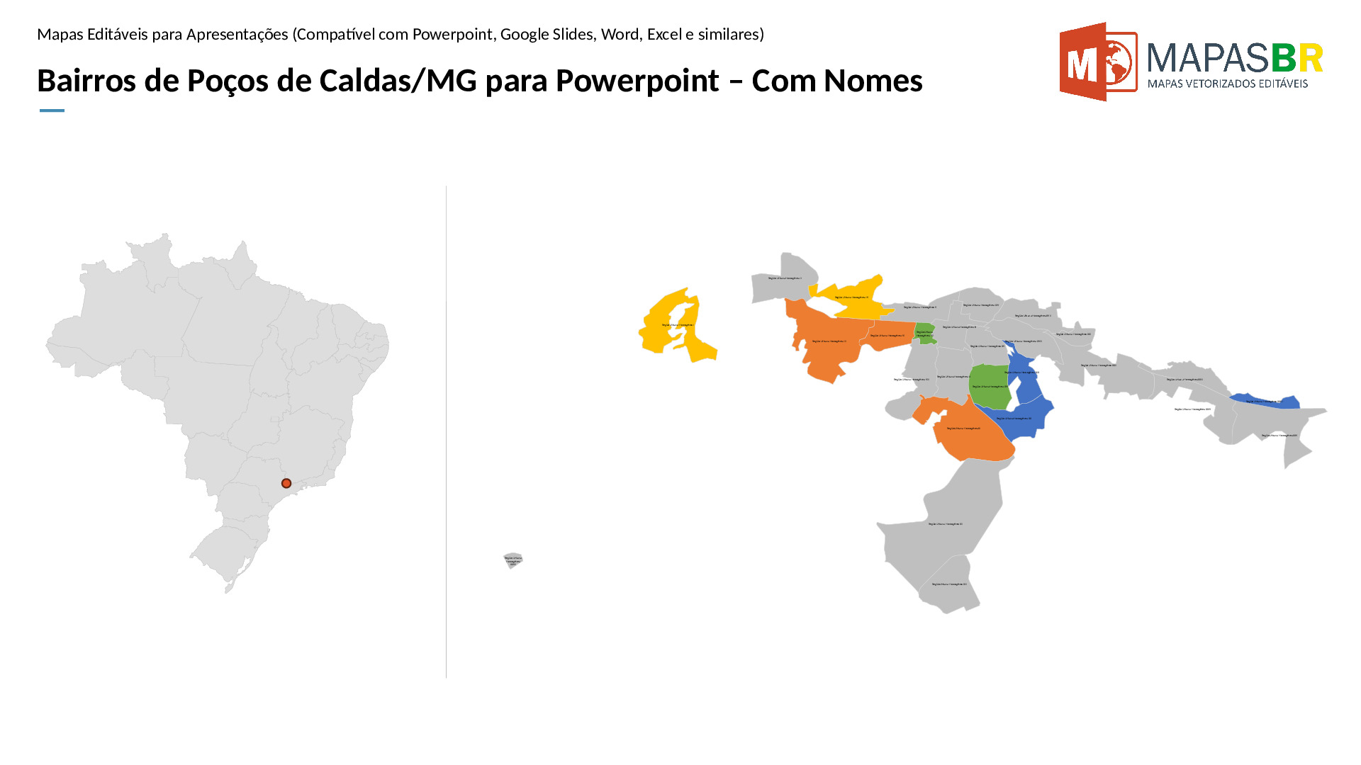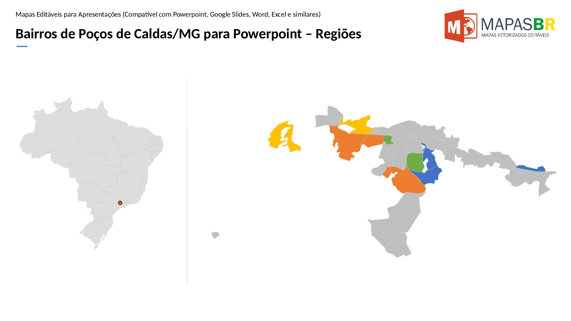 Bairros de Poços de Caldas/MG em formato PPTX, editável no PowerPoint, Google Apresentações ou OpenOffice.