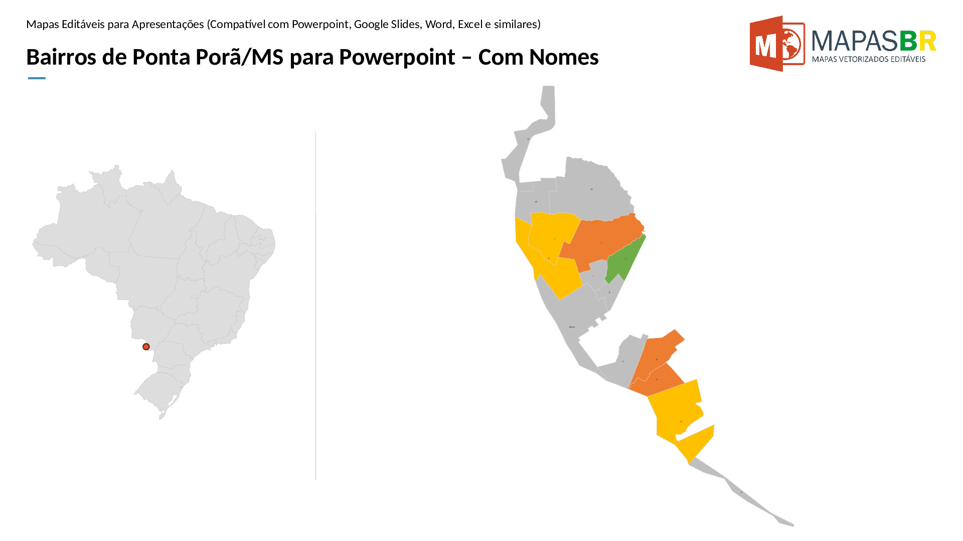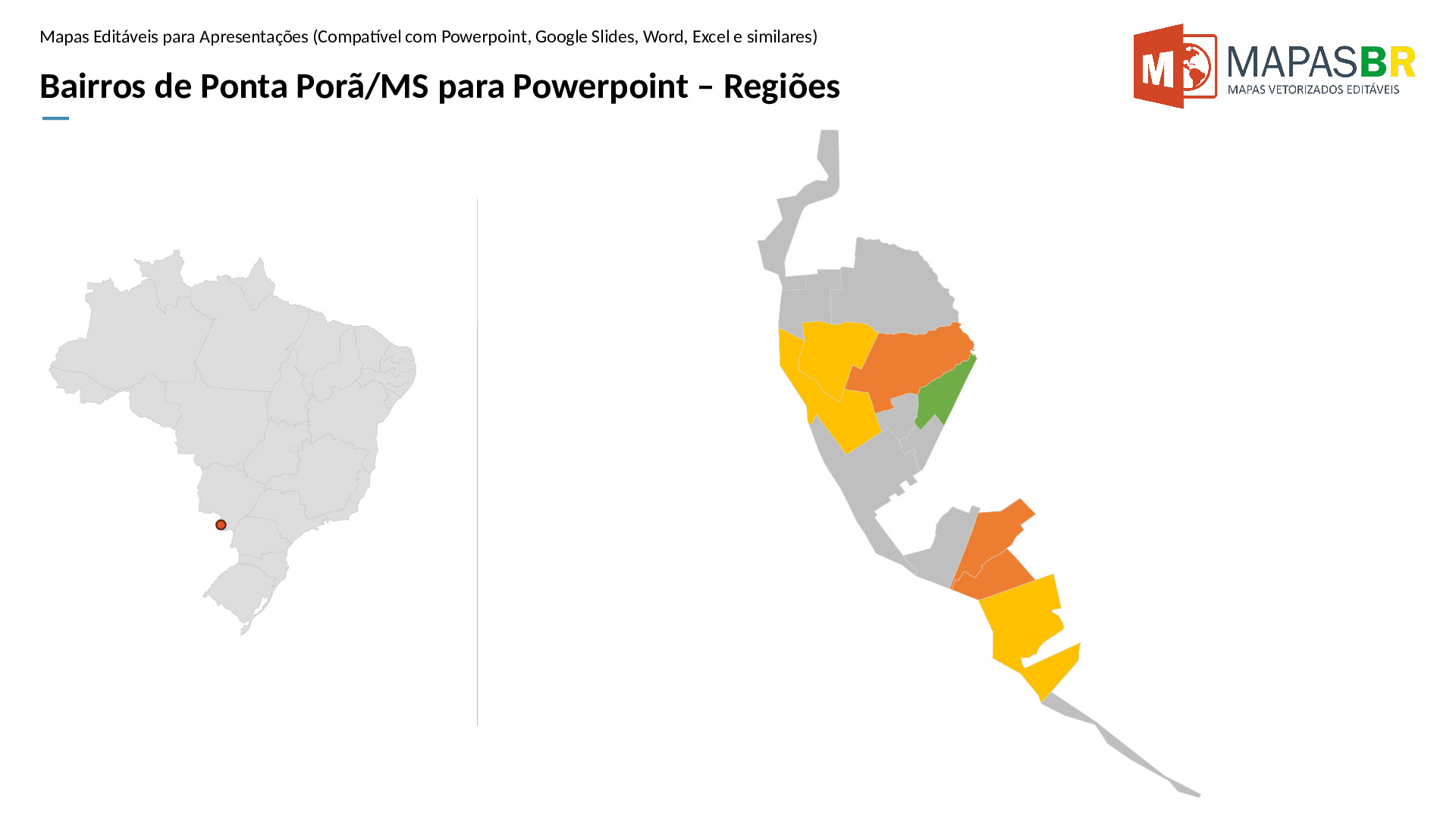 Bairros de Ponta Porã/MS em formato PPTX, editável no PowerPoint, Google Apresentações ou OpenOffice.