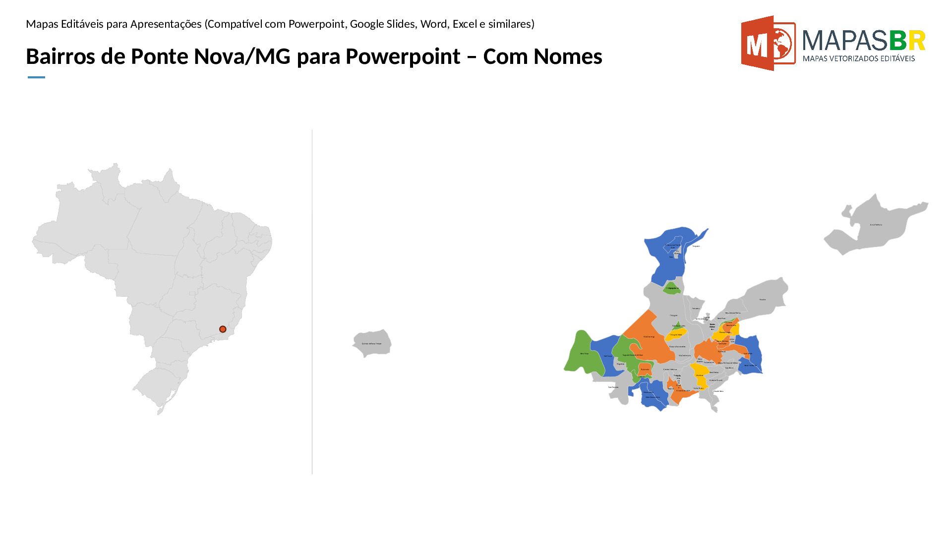 Bairros de Ponte Nova/MG em formato PPTX, editável no PowerPoint, Google Apresentações ou OpenOffice.