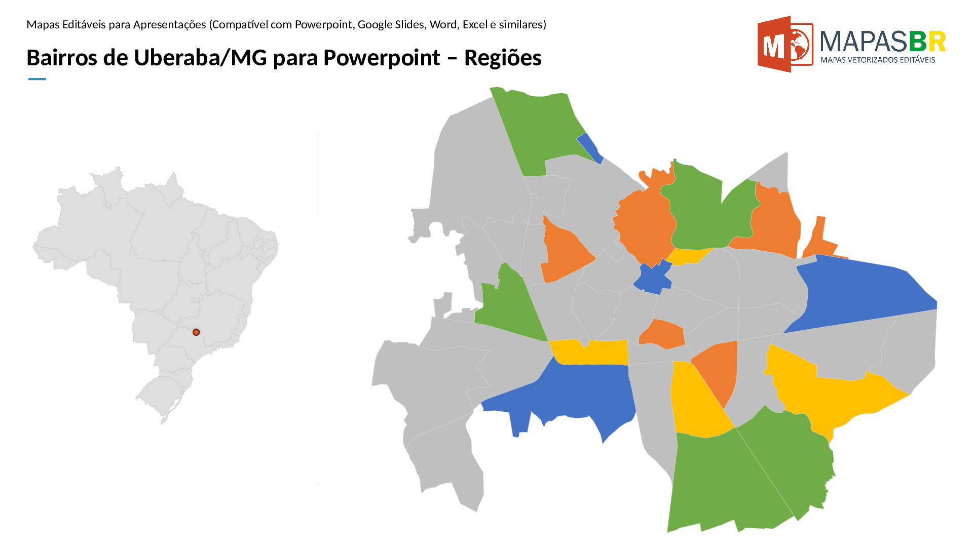 Bairros de Uberaba/MG em formato PPTX, editável no PowerPoint, Google Apresentações ou OpenOffice.
